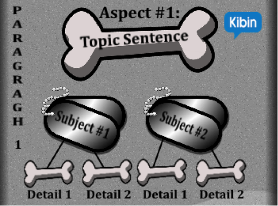 Each paragraph will have a topic sentence focused on the aspect you’re comparing and contrasting. Each paragraph will also have two details about each subject as they relate to the aspect: