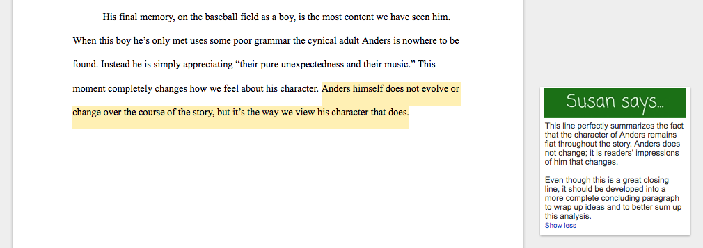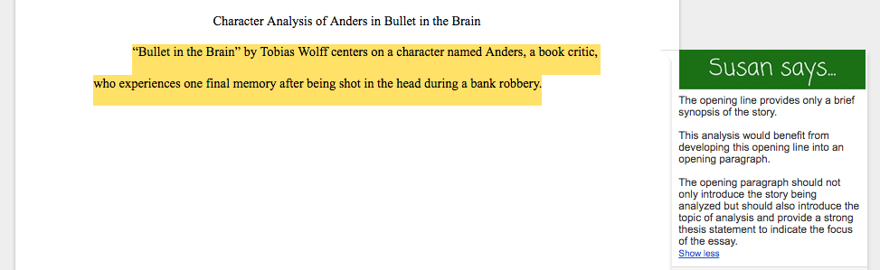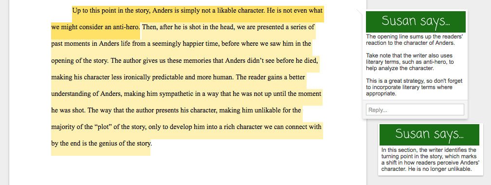 Still not sure your character analysis makes the grade? Send it our way for some expert feedback.