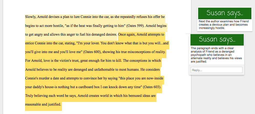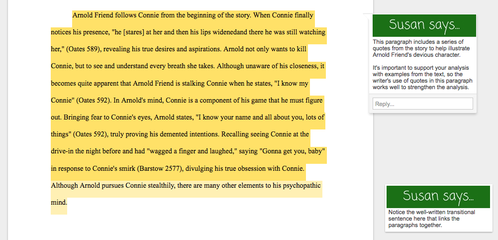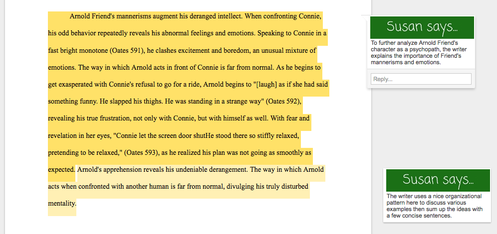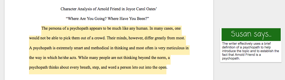 The second analysis focuses on Arnold Friend from the short story “Where Are You Going, Where Have You Been?” This example is a longer, more fully developed essay.