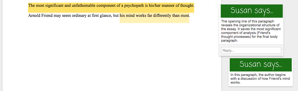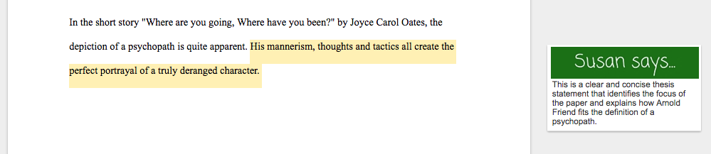In the above character analysis essay example, I noted that the writer could strengthen the introduction, thesis statement, and conclusion. Need help in those areas? Check out these resources: